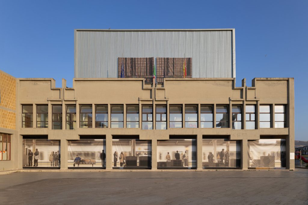 Good Day di Feng Li, ad esempio, trasforma piazza Beyus in un surreale solarium, mentre Le bonheure tue di Rima Samman, artista franco-libanese che immerge nei colori del racconto fiabesco la storia di un Libano irrimediabilmente perduto, trova le sue corrispondenze melanconiche nell’orto botanico. Mentre Gibellina Shinkansen Station di Arnaud Hendickx modifica la facciata del Municipio in una stazione ferroviaria dai tabelloni incomprensibili, Una città quasi infinita di Paolo Ventura, con i suoi equilibristi sospesi sul nulla di vie deserte, e le quinte e i sipari che introducono alle pose di circensi dei primi del Novecento, si presenta come un mondo ibrido, personalissimo nel coinvolgimento delle foto private, e universale nella struttura di un racconto illogico come un sogno. Le case lì intorno, che sono già di per se stesse dei racconti ulteriori, fatti di piccoli giardini seminascosti da aperture severe, risuonano di quelle immagini geometriche e delle loro finestre impossibili.