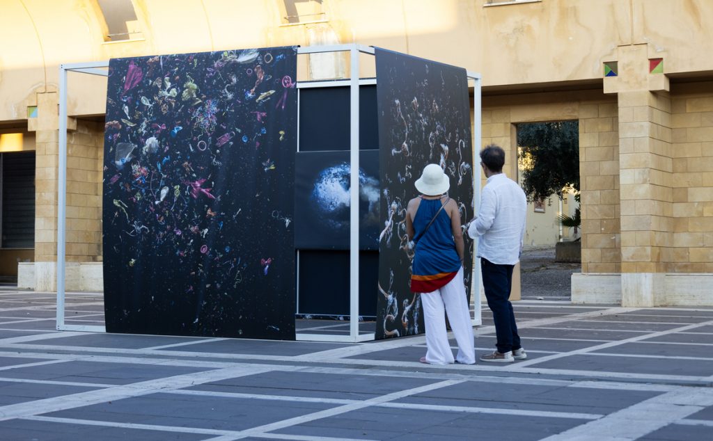 Al MAC Ludovico Corrao, la mostra Erbario impossibile di Rossella Palazzolo e Sergio Zavattieri (curata da chi scrive) offre un doppio esercizio di ricodifica dell’immaginario vegetale: Zavattieri, omaggiando Karl Blossfeldt, presenta eleganti composizioni, a confine tra fotografia e pittura, in cui le piante sono paradossalmente sostituite da cloni di plastica, mentre Palazzolo, trasferendo le immagini su cemento, genera una cartografia fossile, un atlante in cui la natura è memoria visiva. Ancora dedicati al rapporto fra immagine e natura sono le proiezioni sulla sfera della Chiesa madre di Quaroni del progetto Altered Ocean di Mandy Barker: immagini apparentemente innocue, colorate e rassicuranti, che rivelano l’insidia delle tonnellate di rifiuti plastici che finiscono in mare.