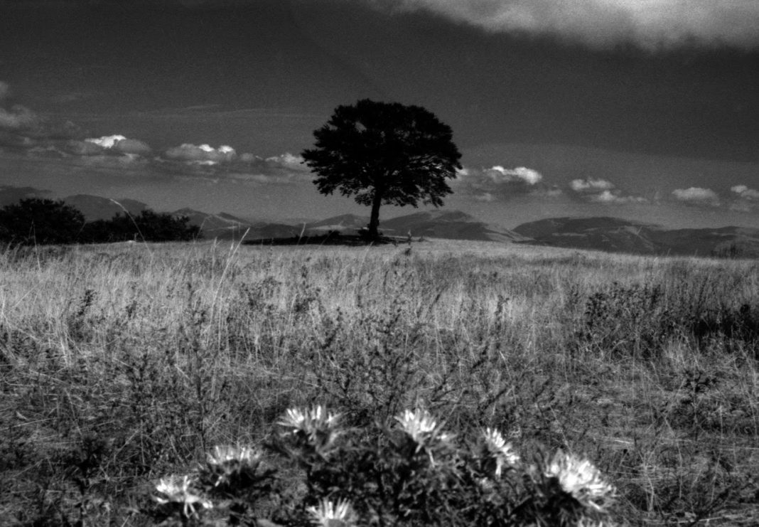 Una delle cifre distintive di Cutini è la costante ricerca di una solitudine fertile, in grado di aprire spazi di senso. Così in Egl’io, il fotografo si mette letteralmente in dialogo con la natura, con il paesaggio appenninico, con gli alberi come archetipi. Il risultato è una narrazione sospesa tra la luce e l’ombra.