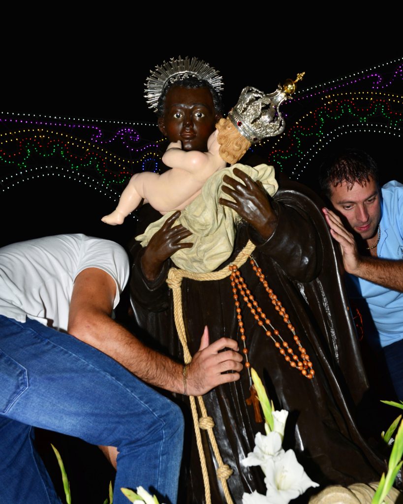 “Credo che i San Fratellani lo pensano come un santo solo San Fratellano. Non conoscono la storia o forse non la vogliono conoscere, perché non vogliono conoscere la verità. Se tu li metti a confronto con la verità, che questo santo era africano, “etiope”, ti dicono: “No, è di San Fratello! “ Non tutti, ma molti non vogliono riconoscere la sua origine perché qui c’è la paura dello straniero, quella parte di razzismo, che io giustifico per il fatto che nei paesini di montagna si tende a stare chiusi. In questo momento, questa paura si sente ancora di più. Prima non essendoci il fenomeno dell’immigrazione, non si discuteva sulla nazionalità del santo, non c’era il pericolo del nero, ora c’è la paura. Non lo riconoscono che è un santo africano. Per loro è come un tradimento. Non vogliono accettare questa verità. Non possiamo mettere da parte le sue origini. Loro pregano il santo senza interrogarsi su chi era Benedetto. Molte volte mi trovo a intervenire in qualche dibattito, quando sento qualche discussione razziale: “Lo sapete che state portando a spalle un santo africano? ”, Loro negano: “Non è vero, è san fratellano, porta il cognome di Manasseri! Non vogliono accettarlo perché non potrebbero accettare l’idea che un santo nero gli spacchi la schiena ogni anno.” Luigi, devoto di Benedetto, San Fratello.