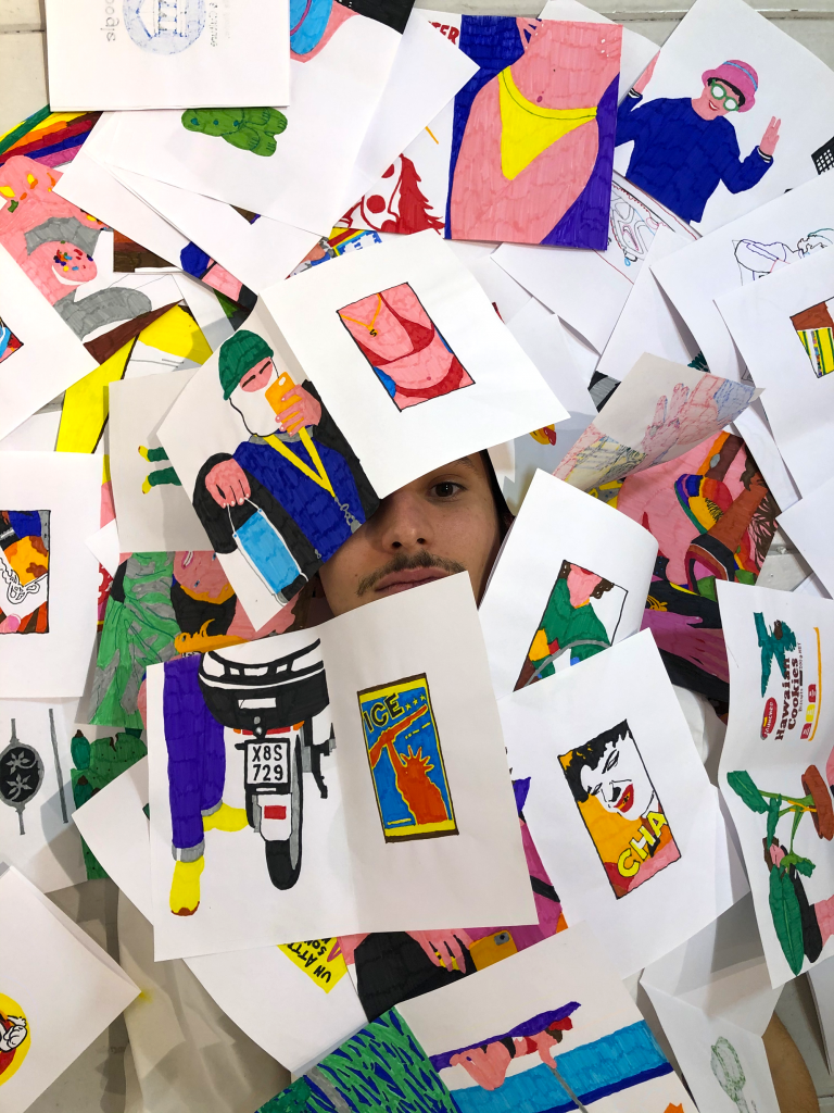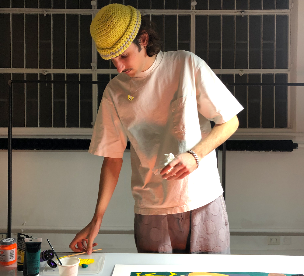 Bimbo Kermit, alias di Joshua Billsborough, è un artista visivo di 24 anni, con base a Milano. Designer multi-disciplinare, lavora tra illustrazione, grafica e pittura. La sua ricerca romanticizza il consumismo estremo della società, riflettendo con ironia gli ideali moderni.