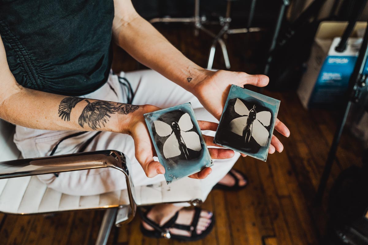 «Il mio workshop è aperto a tutte le persone con o senza esperienza di fotografia. È progettato per essere un workshop di fotografia accessibile, non intimidatorio, non giudicante e non restrittivo. Non ci preoccupiamo tanto dei tecnicismi ultra specifici del complesso procedimento fotografico. Spiego le basi del metodo e progetto un workshop incentrato sul gioco creativo piuttosto che sulla perfezione. Ciò che mi ha attirato del processo al collodio umido sono le imperfezioni e i “difetti”, lo staccarsi dell’emulsione fotografica dai bordi del fotogramma, e così permetto agli studenti di capire e comprendere il processo, abbracciando la magia dell’alchimia fotochimica e l’imprevedibilità del mezzo».
