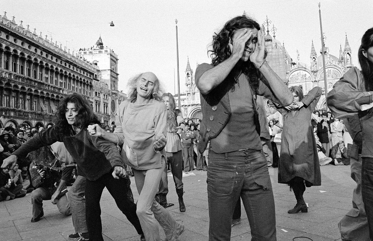 Sono anche gli Anni di Piombo, dei Referendum e dei dibattiti sui temi importanti dell’aborto e del divorzio, del Compromesso Storico e delle crisi energetiche. Ripa di Meana rimescola le carte istituzionali, creando uno spazio di dibattito vivo e radicale, dove l’arte è legata a filo stretto alle dinamiche sociali. Un periodo tutt’oggi interessante e sempre più sentito, studiato nella sua complessità, dove il concetto di istituzionalità viene completamente ribaltato, l’artista è politico, la politica vive nell’arte e l’arte vive in ogni angolo della socialità. L’occhio testimone è quello di Lorenzo Capellini, che restituisce un campionario di momenti catturati su carta: sono fotografie d’autore ma anche storiche, capaci di dialogare a diversi livelli. Spiccano le testimonianze di performance e interventi site-specific (Gae Aulenti in Piazza San Marco partecipa all’happening Holy Ghost di James Lee Byars, 1975), ritratti di grandi nomi (Achille Bonito Oliva, Alberto Moravia, Renato Guttuso, Patty Smith), momenti di lavoro (Carla Fracci prova in Piazza San Marco, 1975).