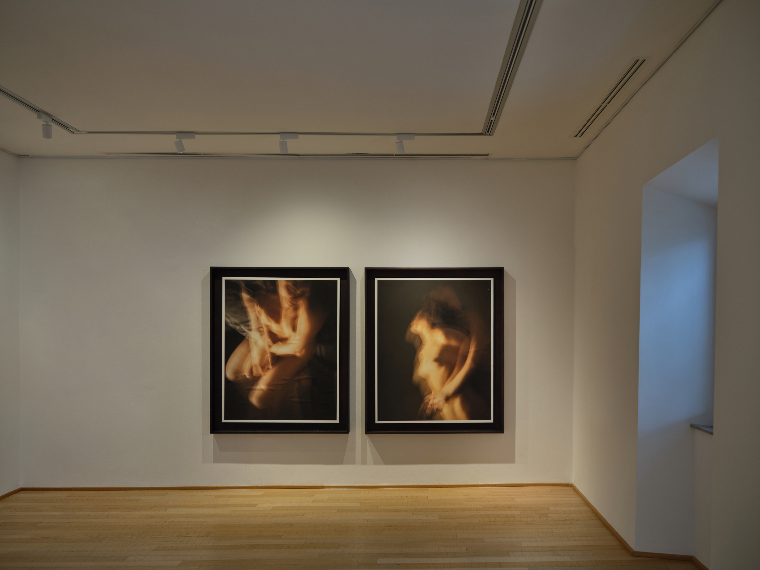Questa tecnica, diventata la sua firma stilistica, ha permesso all’artista di dar vita a trasformazioni attraversate dal tempo e dalla luce, manifeste soprattutto nella seconda parte del suo lavoro, in cui corpi nudi fluttuano poeticamente al chiarore di 300 candele, per un’atmosfera calda, intima e suggestiva, in cui la luce naturale accentua il senso di fragilità e introspezione. Il lavoro fotografico dal titolo Aphrodite L’amour et le Divorce utilizza i corpi dai contorni indefiniti come costanti, inesorabili trasformazioni, tra esitazioni e insicurezze, audacia e risolutezza. Una materia fluida sospesa tra presenza e assenza, tra forma e dissolvenza.