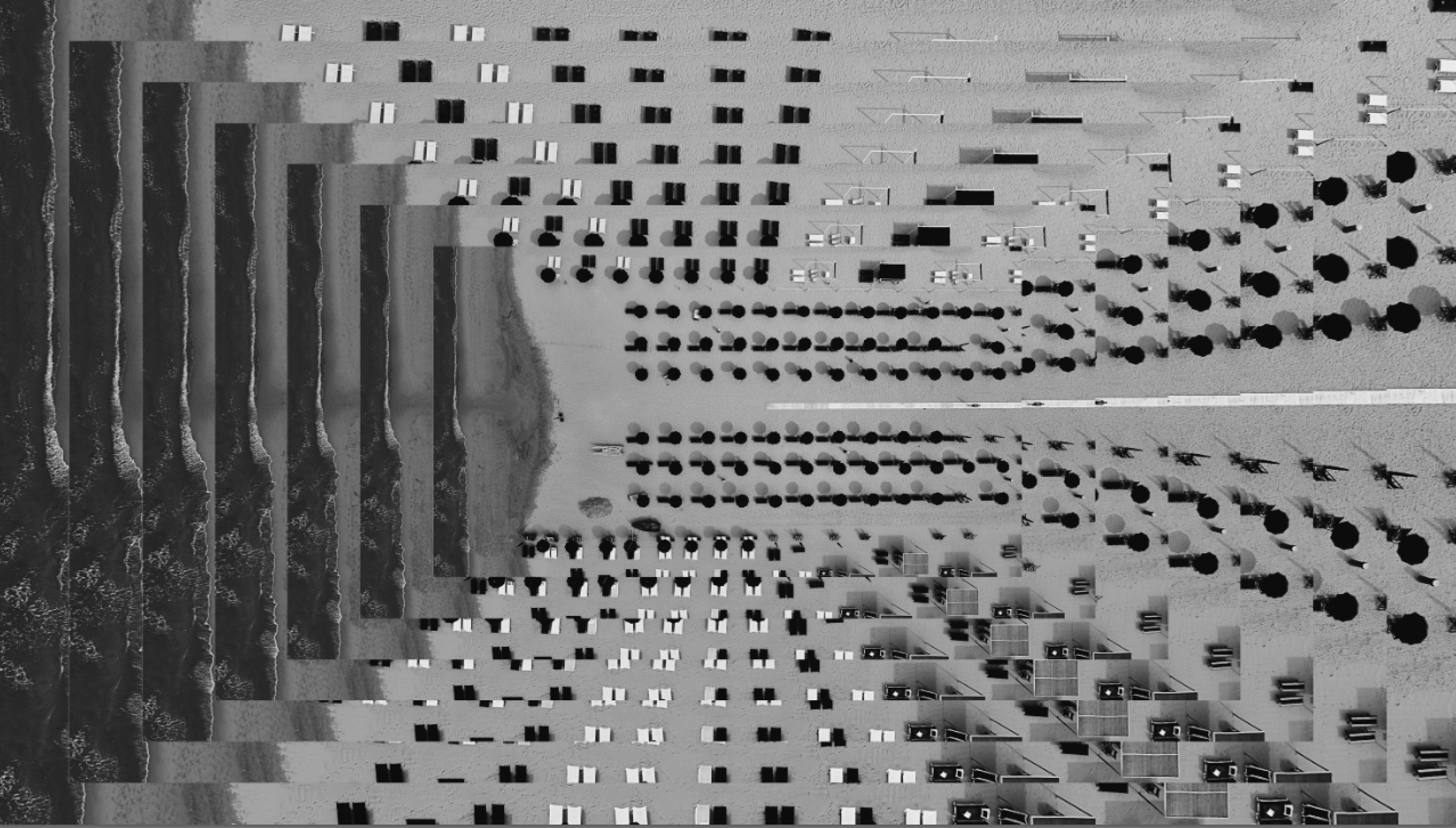 Nell’ultima parte della mostra, dal titolo Through the View, una serie di fotografie in bianco e nero, in cui gli scatti si sovrappongono per un gioco di prospettive caleidoscopiche, si ritorna sui luoghi della Versilia, per concludere un metaforico cerchio.