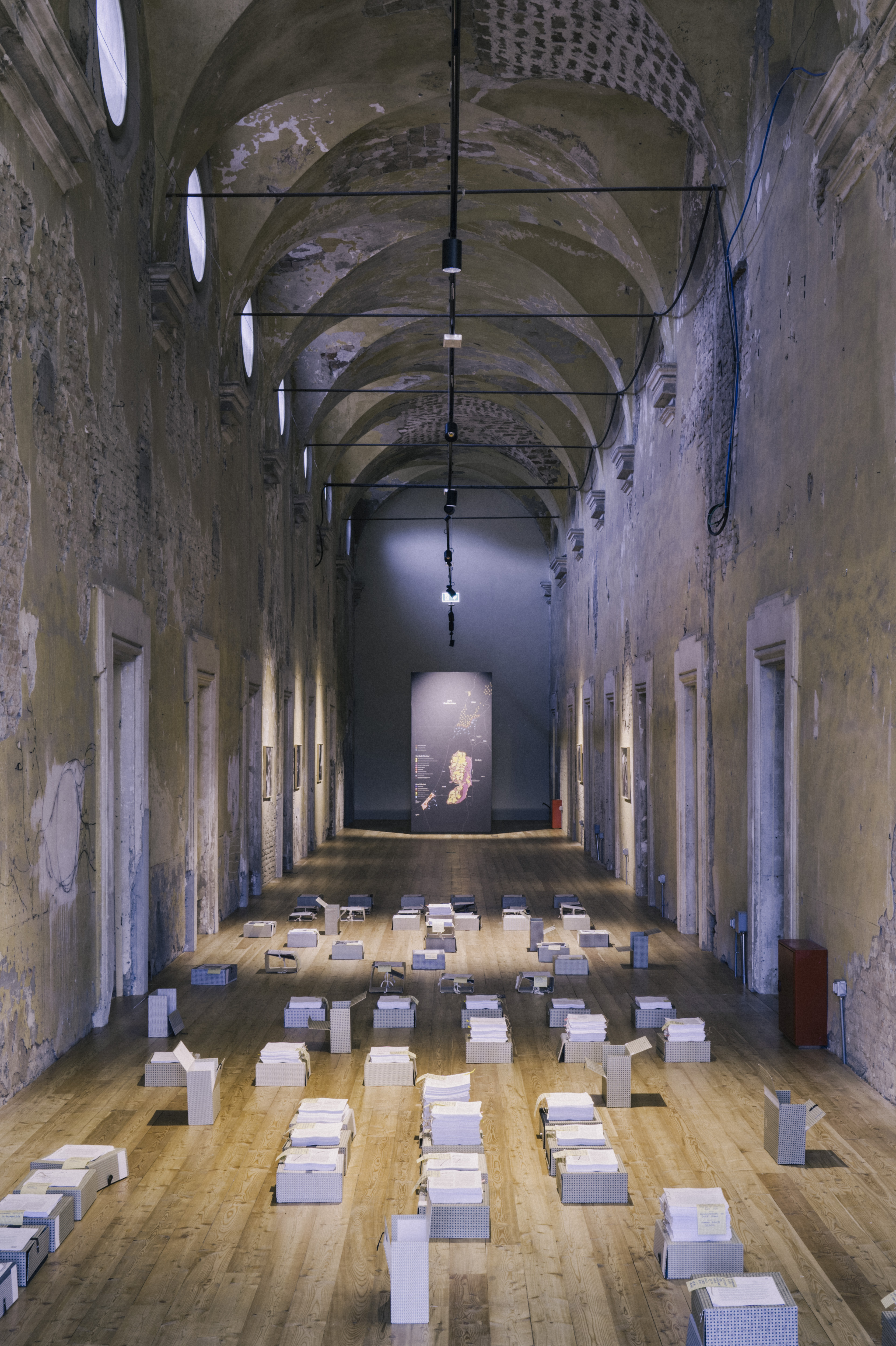 Il percorso infatti ci porta ad attraversare tante pile di carta che riempiono il corridoio dove poi si aprono le altre stanze con le foto in un bianco e nero molto marcato delle tappe in Palestina e Libano (per la sua precisa documentazione sull’esplosione nel porto di Beirut si è meritato il World Press Photo, nella categoria Spot News, nel 2021). Le pile di carta sono i documenti che riguardano la questione palestinese trovate sul sito dell’Onu, dell’Unione Europea a di altre istituzioni internazionali. «Sono lì a disposizione di tutti», aggiunge Francesca Recchia. «Perché non si va a cercare? Perché se ne scrive così poco?». Ci si può avvicinare e leggere. C’è anche una testimonianza di Francesca Albanese, relatrice speciale delle Nazioni Unite sui territori palestinesi occupati, in cui spiega che si tratta di genocidio.