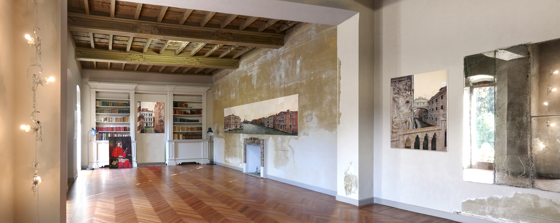 Gli spazi con il loro fascino e la loro energia hanno “scelto” le opere. I dettagli e i segni che il tempo ha stratificato sui muri della Villa, sono entrati in dialogo con le forme delle architetture fotografate, con le pieghe e gli strati di carta delle Opere.