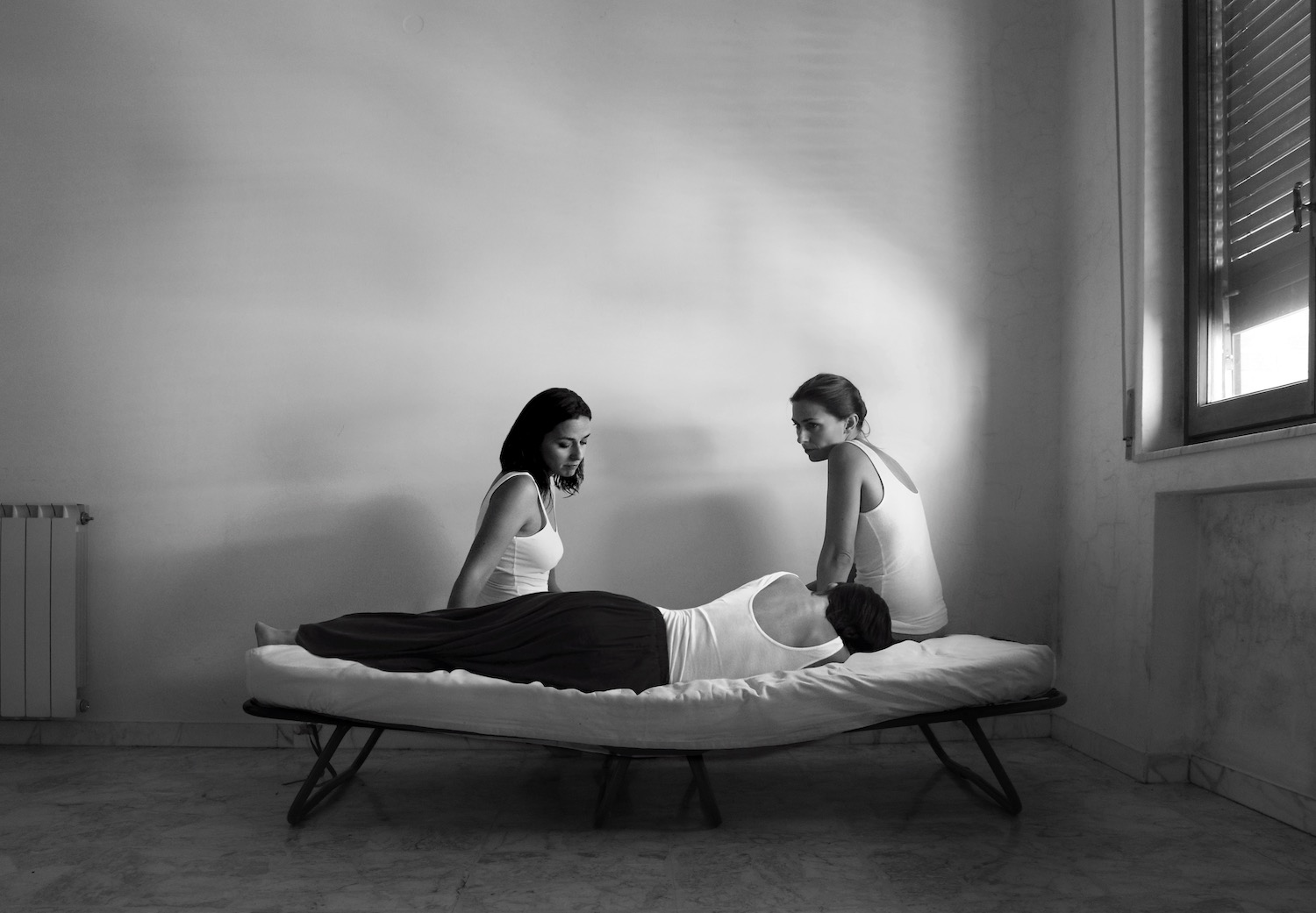 «Nei miei autoritratti do sicuramente più importanza al corpo che al viso, ossia, alla comunicazione corporea piuttosto che a quella facciale, e sono solita ritrarre me stessa (ma anche mia figlia) di schiena. Questo perché amo osservare gli altri, specialmente quando non sanno di essere guar-dati; trovo che il corpo sia più sincero e rilassato quando non si sente al centro dell’attenzione e che esso sia uno strumento comunicativo molto potente, specialmente quando fluttua nello scat-to di un salto, nel tentativo fallace di volare. La schiena, ma anche le mani e le braccia, hanno un posto importante nel mio lavoro: la prima è il vaso dentro al quale vi è il cuore, le mani sono fondamentali al atto creativo, esse fanno e offrono. Nella testa risiedono i sogni, l’identità creativa e quindi il vero io».