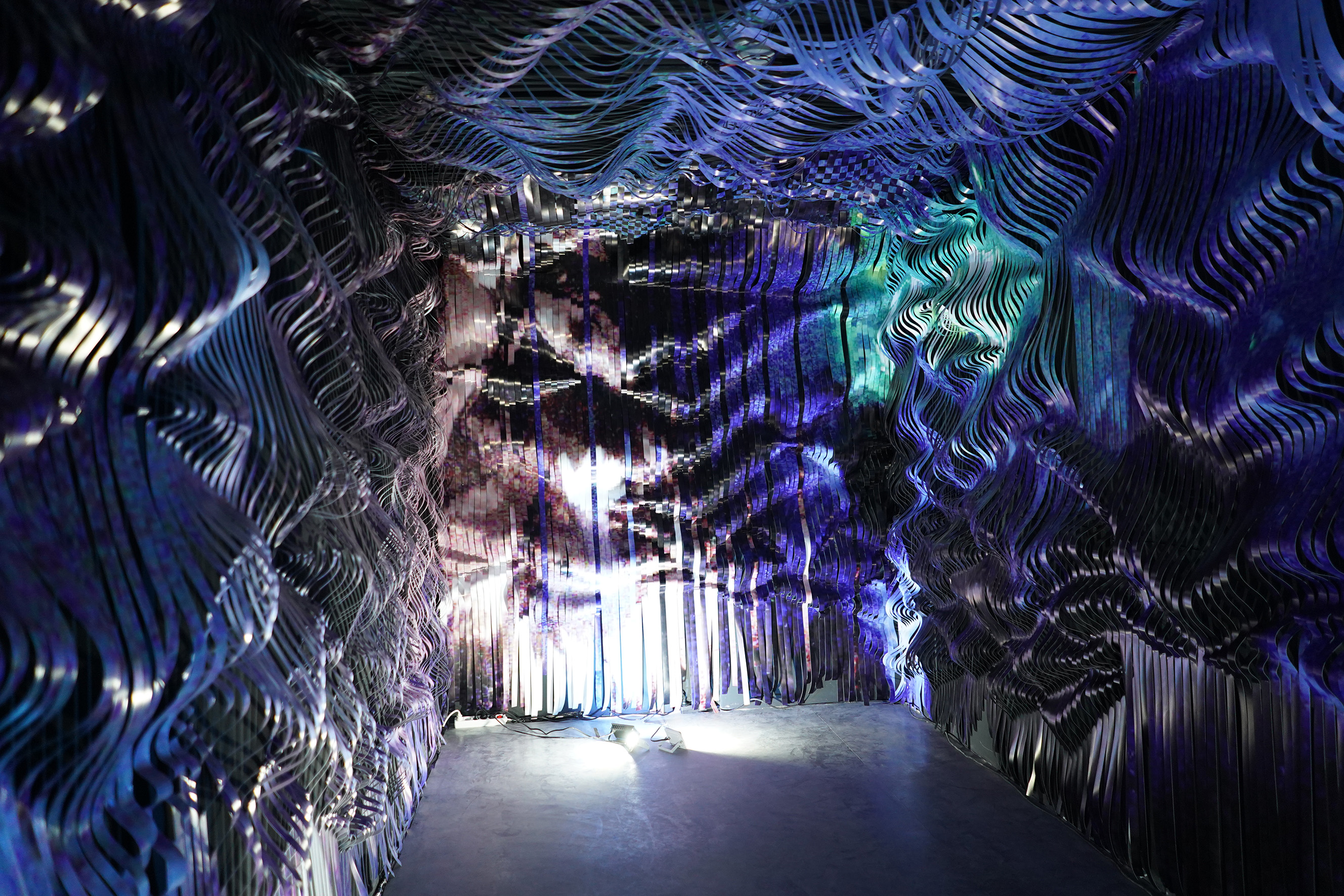 Oltre ai suoi oggetti intrecciati che fanno oscillare l’attenzione dello spettatore tra le caratteristiche del materiale e del contenuto dell’immagine, trova un modo per uscire dal formato classico della fotografia nelle sue installazioni e di entrare in uno spazio tridimensionale molto più libero.