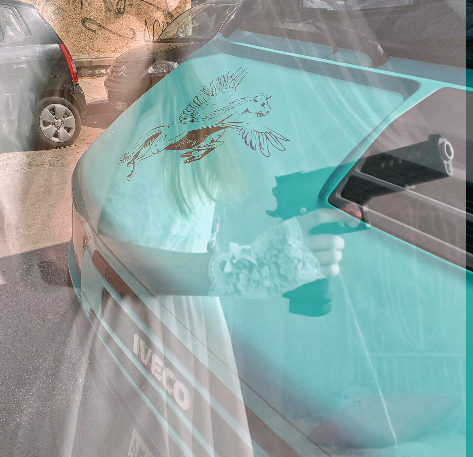 «Siamo solo un insieme di stimoli, di incontri, di visioni, di esperienze che uniti diventano un mix irripetibile. Non si può prescindere dal passato nella definizione di una identità artistica né, a mio avviso, dalla condivisione che diventa un atto di coraggio, come spogliarsi davanti a un obiettivo. Cito un mio lavoro del 2018, “13”, curato da Serena Achilli al Lago di Vico: Una ragazza nuda su di una barca ormeggiata nel lago in lontananza con il volto coperto da una maschera di Unicorno. Poteva essere vista da vicino solo attraverso un binocolo posizionato in un osservatorio ornitologico di fronte. La maschera, l’identità, i social, essere nudi di fronte a tutto o a nulla».