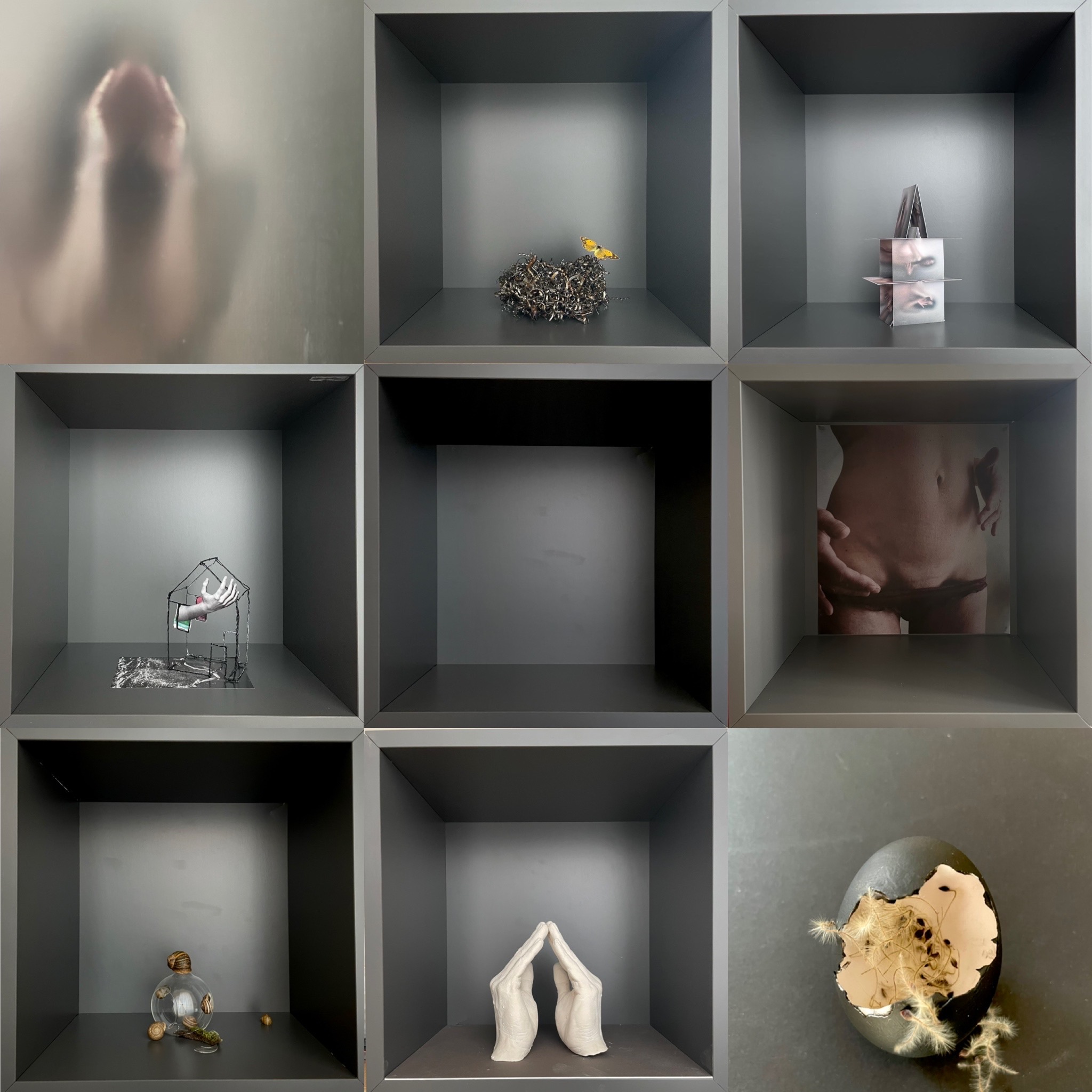«Personalmente credo che del mio privato io renda pubblico solo quell’aspetto che riconosco in risonanza con la collettività, quella pelle intima che funge da ponte tra il mio nocciolo e il senso umano collettivo, e che quindi aprendosi e svelandosi all’altro, nell’altro si ritrova e entra in dialogo nutrendosi e nutrendo. Non è per compiacimento ma, per me, ci sono parole che si dicono e che aprono a scambi, riflessioni e dialogo e parole che si pensano e basta, per se stessi e punto. Quindi una sorta di costante scelta di cosa mettere fuori da me e in comune con gli altri e cosa continuare a proteggere. Non saprei nemmeno dire se ho raggiunto una mia rappresentazione di arte, mi sento piuttosto in continua ricerca intima e ritengo l’espressione artistica quello strumento adatto per indagarmi e comprendermi, per trovare il mio senso a quell’invisibile che mi abita e mi muove a vivere con curiosità. Proprio grazie alla curiosità e alla voglia di rompere alcuni schemi ho scelto di lavorare sulla terza dimensione, mescolando la finzione alla realtà, scegliendo simboli e utilizzando metafore per raccontare un mondo sotterraneo che forse un po tutti ci abita e ci rende connessi e sperimentando materiali diverse trovo diverse possibilità di raccontare anche una stessa cosa. Un po’ come se un sentimento lo analizzassi da diversi punti di vista attraversandone le diverse profondità».