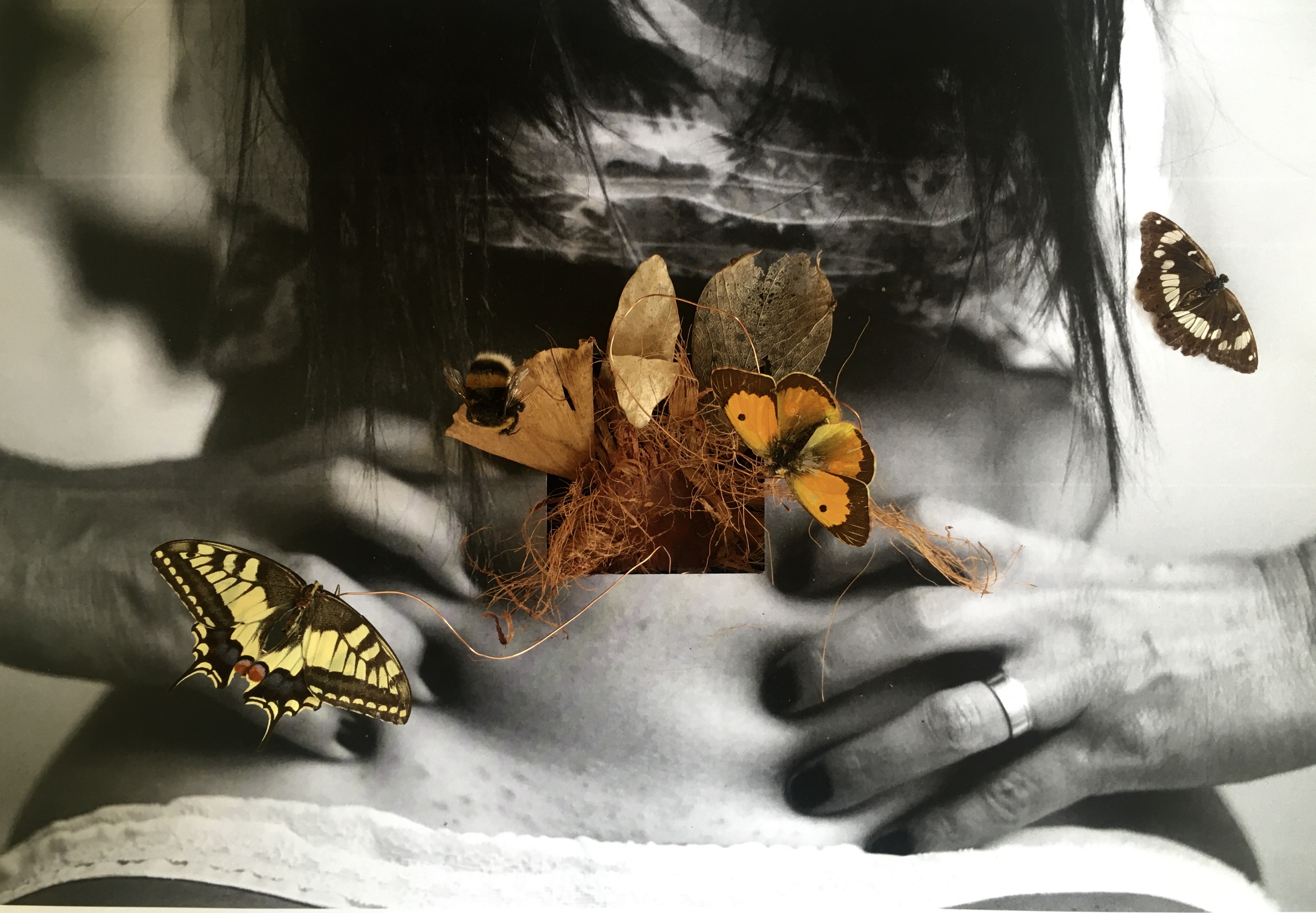 Re Barbus è lo pseudonimo di Vissia Giustarini, artista visiva nata nel 1971 a Roma, dove vive e lavora. La sua ricerca predilige l’uso della fotografia e le tecniche del collage e dell’assemblage. L’ampio ventaglio espressivo del suo lavoro si manifesta attraverso la varietà dei materiali e dei supporti e la scelta di diverse tipologie di carta, oscillando dalla carta velina al ferro sino a includere elementi che spingono la percezione visiva dell’opera oltre la semplice bidimensionalità dell’immagine.