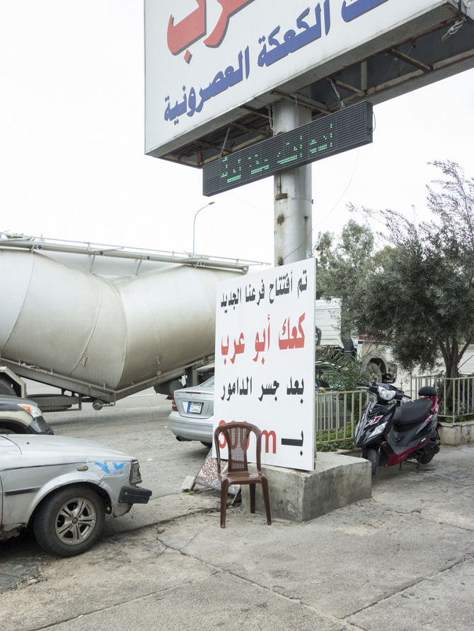 Nel caso di ANONIMA PLASTICA, la sedia come stratagemma mi si è presentata casualmente. Come mi dico sempre, la foto manifesto del progetto è l’unica che non ho scattato: una sedia posizionata su una piattaforma di cemento al centro dell’autostrada da Beirut a Baalbek, in Libano. Stavo guidando e non mi sono sentito di lasciar andare il volante per scattare quella foto. Ma da lì è iniziata una sorta di caccia al tesoro, che ha previsto una buona dose di ossessione: la sedia di plastica – bianca rossa marrone verde – era ovunque. Nulla di strano: anche nel sud Italia come tutta l’area mediterranea la sedia di plastica è un elemento integrante del paesaggio. Ma trovandomi in Libano, ero concentrato sull’epopea della sedia in quello specifico contesto, e insieme a Francesca Gotti e ai nostri amici Rana Rmeily (graphic and media designer) e Wassim Melki (architetto) ci siamo immaginati di poter ricostruire un paesaggio storicamente, socialmente e geograficamente molto frammentato come quello libanese attraverso questo oggetto: si è rivelata una sorta di macchina spazio-temporale, con la quale ripercorrere gli ultimi 40 tumultuosi anni del Paese».