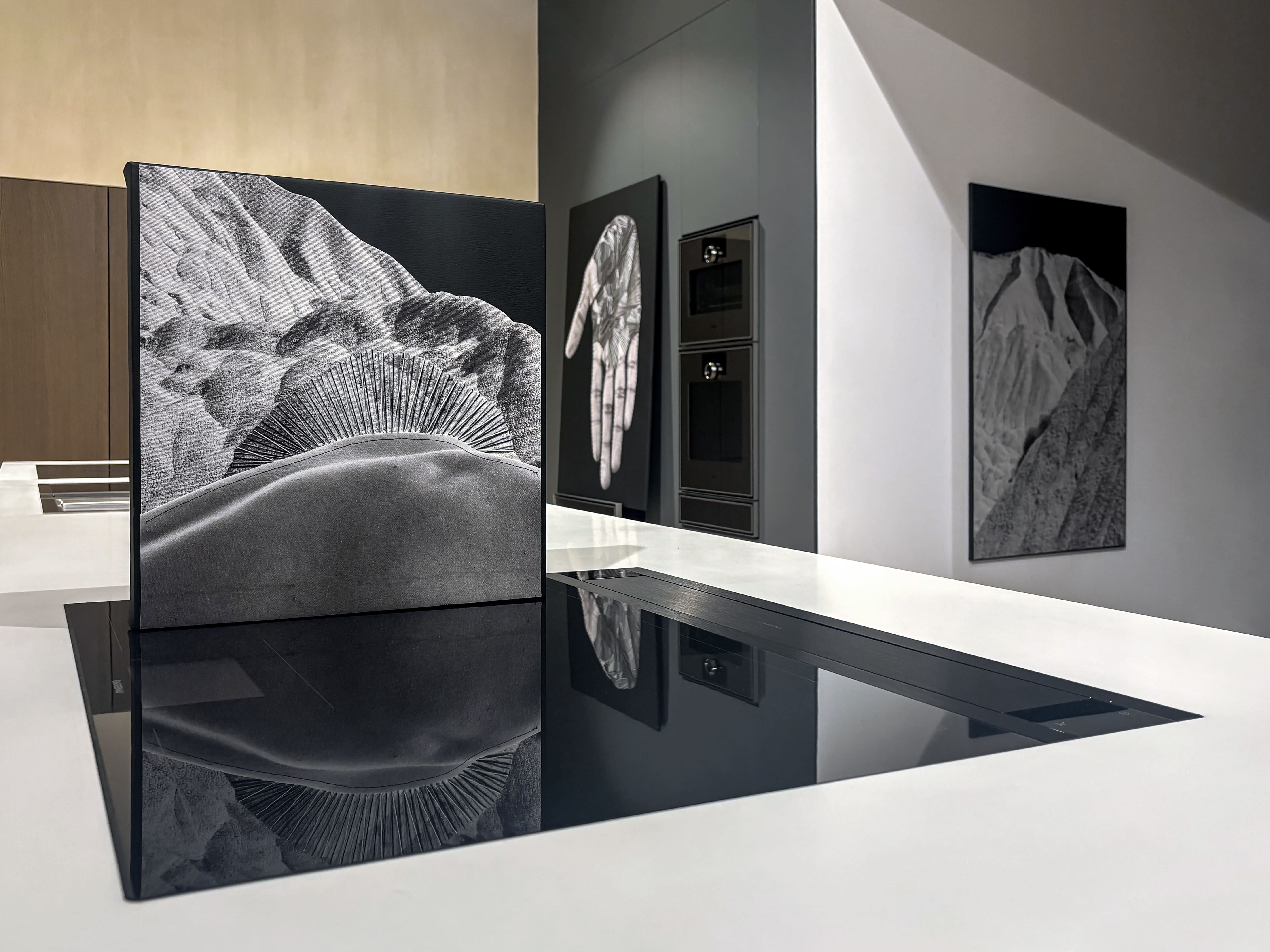 A Milano, nello showroom Gaggenau DesignElementi Hub, la fotografia incontra il design e l’empatia prende forma. Punti di contatto – Restiamo in ascolto, la mostra di Betty Salluce curata da Sabino Maria Frassà e visitabile fino al 18 dicembre 2026, propone uno sguardo nuovo sul rapporto tra corpo e paesaggio. Promossa da Cramum e Gaggenau nell’ambito dell’Olimpiade Culturale di Milano Cortina 2026, l’esposizione mette in relazione le immagini con gli oggetti e le superfici dello spazio espositivo. Lo spazio si trasforma in un’esperienza sensibile e unica, che invita a riscoprire l’altro con delicatezza, superfici moderne e lineari si confrontano con le curve morbide delle immagini fotografiche.