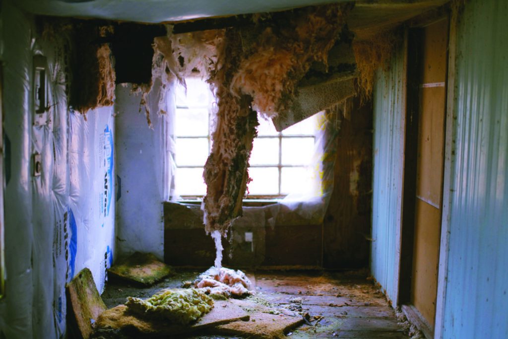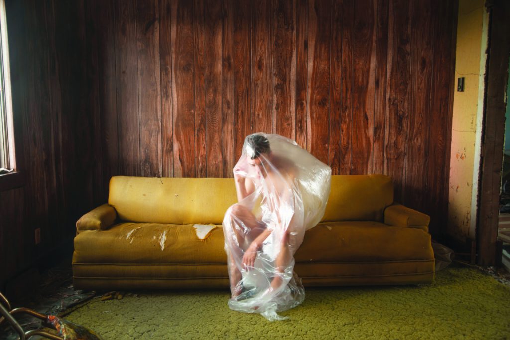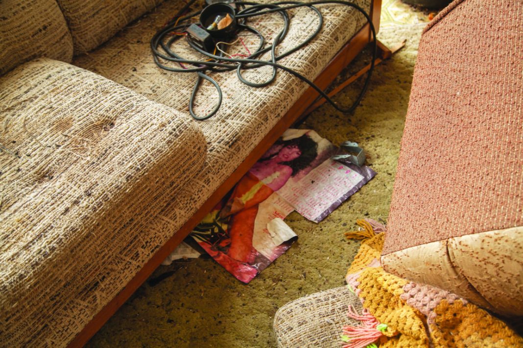 Le case abbandonate, sono immortalate da una prospettiva sia interna che esterna. Infatti, assieme al paesaggio spoglio e desolato che le circonda, Thompson ha realizzato anche una serie di autoritratti in cui il suo corpo interagisce con gli spazi domestici abbandonati o rappresenta, visivamente, il prolungamento lineare degli oggetti ritrovati nelle stanze, come nello scatto che vedete qui sotto.
