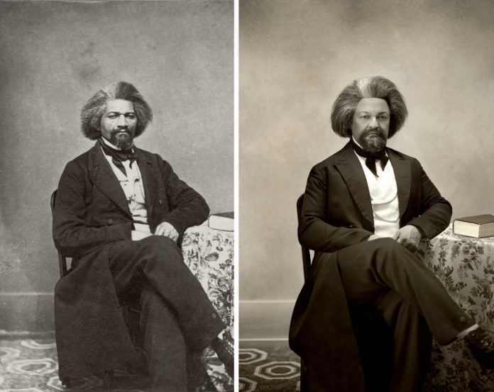 Un altro esempio è Frederick Douglass, diventato celebre leader del movimento abolizionista dopo essere scappato dalla schiavitù nel Maryland. Kenneth Morris, discendente di Douglass, ha portato avanti la missione del suo antenato combattendo l’ingiustizia razziale e il traffico di esseri umani attraverso l’associazione Frederick Douglass Family Initiatives, della quale è co-fondatore. Nonostante Morris fosse già consapevole, al momento dello scatto, della sua vicinanza a Douglass – sia fisica che etica – ha ammesso di aver provato una strana sensazione nel vedersi vestito in quel modo, «mi sono guardato allo specchio ed è stato come vedere Frederick Douglass. Mi ha letteralmente trasformato».