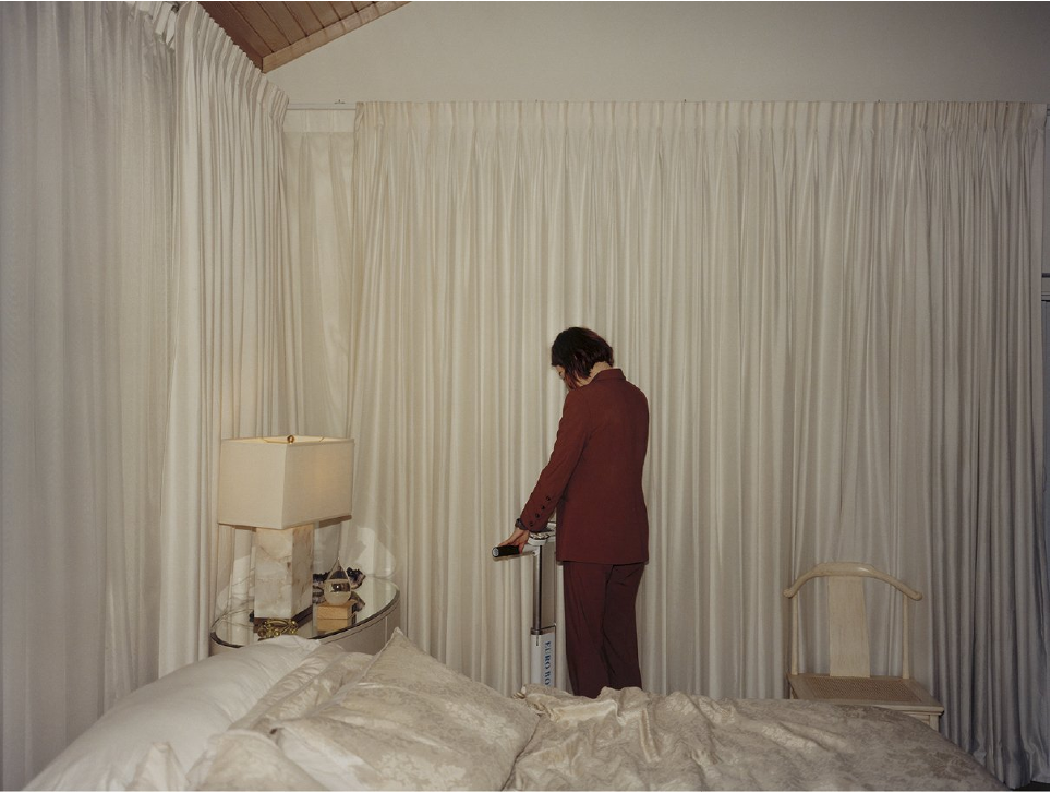 Tre dei nuclei esposti nascono infatti in prossimità dei suoi film più recenti, lungo i bordi dei set o negli interstizi delle città ricostruite in studio. New Orleans, Atlanta, Henley-on-Thames e i soundstage di Budapest diventano così luoghi laterali, quasi residuali, da cui emergono fotografie già confluite nei volumi Dear God, the Parthenon Is Still Broken (2024), realizzato durante le riprese di Poor Things, e i shall sing these songs beautifully (2024), nato in parallelo a Kinds of Kindness. A questi si aggiunge viscin (2026), serie finora inedita scattata sul set del suo ultimo film Bugonia, presentata qui in anteprima e accompagnata dall’uscita del nuovo libro fotografico dell’artista.