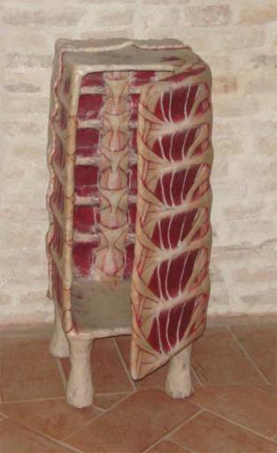 Nodo_rete (mutuato dalla teoria matematica dei grafi) è il concetto su cui è costruita la mostra ospitata presso il Castello e gli Ex Essiccatoi Bozzoli, strutturata come una riflessione sui sistemi complessi di relazioni. E parte da oggetti d’uso comune, come l’asciugacapelli e la sedia, Simone Racheli, che porta all’estremo l’analisi della rete, sino a spingersi verso l’aspetto più primordiale e basico: quello delle fasce muscolari e del sistema nervoso che, resi straordinariamente dalla cera, si fanno utensili e si sostituiscono ai materiali comuni.
