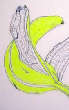 Bianco l’abito, quasi nuziale, indossato da Delfina Marcello durante la sua performance, caratterizzata da una ritualità silenziosa e lenta nei gesti, pianificata e sintetizzata con cura dall’artista. Al bianco si affianca invece il giallo-evidenziatore nella lunga carrellata di banane disegnate a mano dall’ironico e disincantato artista veneziano Alvise Bittente che, ancora una volta, sceglie oggetti comuni –ormai distanti anni luce dall’ipercolorata cultura pop– per ridefinire, ridimensionandone al contempo il tono, il concetto di arte e anche quello di ratio perché, come lui stesso afferma, “… una cosa è il progetto dell’idea e un’altra la negazione dello stesso nella messa in forma”.