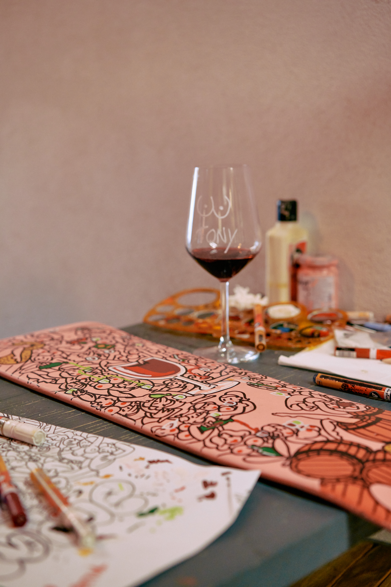 Portfolio di vini francesi naturali, SuperNaturale è una powerhouse dedita alla produzione di iniziative pensate per unire l’artigianalità e le culture urbane contemporanee. «Da un semplice desiderio di ricreare una piccola comunità unita dalla passione per l’enogastronomia e l’arte, è nata l’idea di far confrontare artisti visivi provenienti da varie parti d’Italia sui temi più disparati con l’obiettivo di dare vita a un’opera d’arte unica, ispirata dall’atmosfera dell’enoteca e dal buon vino», spiegano da SuperNaturale.