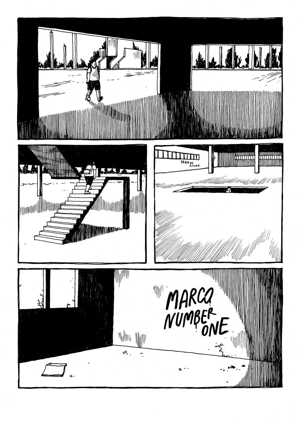 Progetto “greetings from” stampato da Hoppipolla (Courtesy: Eliana Albertini)A settembre è uscito Malibu, il tuo libro edito da Becco Giallo: varie storie di periferia ambientate in un solo grande luogo, il Polesine, fra i rami del Delta del Po. Com’è nato questo libro?