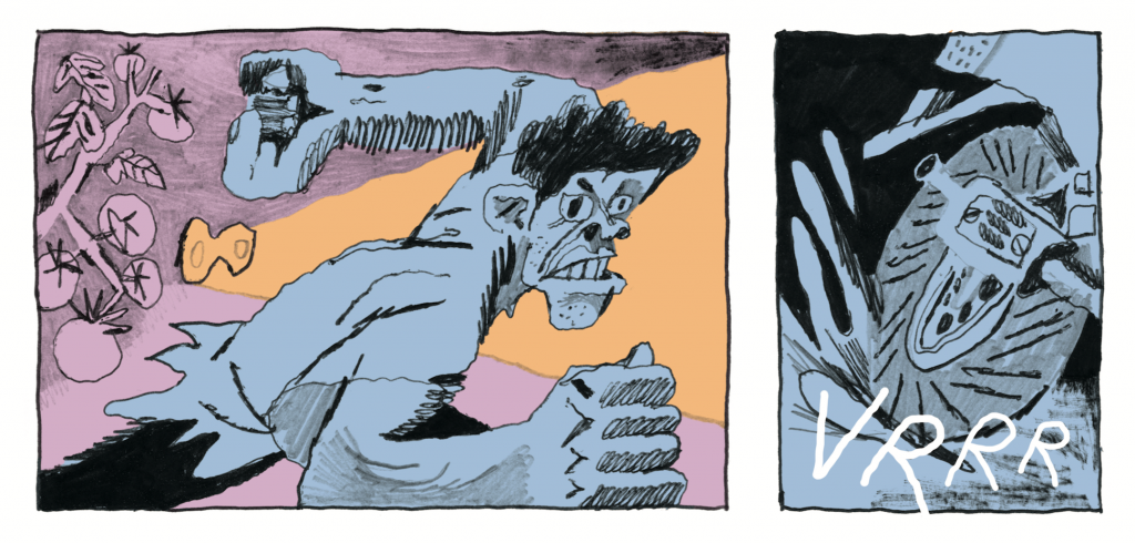 «Ciao! Come molti colleghi, ho iniziato muovendo i primi passi nell’autoproduzione, subito dopo l’università, e nell’autoedizione, cioè fare tutto da soli. Dopodiché: viaggiare. I primi tempi non facevo particolare affidamento a internet per capire il mondo. Toccare con mano era l’unico modo di capire i meccanismi di questa professione. I festival di fumetto e di illustrazione erano i luoghi perfetti per conoscere, capire e condividere. Dato che i disegnator* passano giorni interi alla scrivania, le fughe in giro per l’Italia (o per il mondo), benché professionali, sono viste come una specie di vacanza. Negli anni ho avuto il piacere di collaborare con tante etichette indipendenti, molte persone conosciute in quella fase primordiale sono diventate i grandi amici di oggi. Sono stato testimone di un periodo di rinascita e cambiamento, ho visto la prima edizione di molti nuovi festival, sia underground (il Ratata di Macerata o l’Afa di Milano) che mainstream (l’ARF di Roma). Ho visto i grandi festival iniziare a dialogare con il fenomeno dell’auto produzione. Ho visto una serie di mutamenti che, ancora in corso, stanno facendo bene a questo settore. Sono quasi dieci anni che vivo in prima persona questo momento storico.»