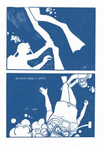 Quando tutto diventò blu è un fumetto al 100% blu: è il colore che rispecchia lo stato d’animo della protagonista, del mare in cui le sue paure scoppiano e anche della tinta che caratterizza tutte le pagine. Puoi spiegare questa scelta interessante?