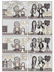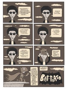 Questa attualità mediale di Massimo Giacon ha molti altri volti. È stato lui ad esplorare il sottile connubio tra l’erotismo della comunicazione e la comunicazione dell’eros. Nelle parole di Daniele Luttazzi: “L’arte di Massimo Giacon non solo conosce le soddisfazioni erotiche del dolore, ma vuole usurpare alla religione la capacità di elevare il sacrificio e la tortura dall’eccitazione carnale verso la santità. Le mete che ispirano la sofferenza più proficua sono in fondo le stesse che motivano la creazione artistica: sfidare i valori stabiliti, minare le strutture del potere” (dall’introduzione di Daniele Luttazzi a Sexorcismo, 2000). Sexorcismo lo raccomando anche a chi tenti di fare o ricerchi esegesi fumettare, e non rimasticature storiografiche e religiose di un’arte che non è. È un vero omaggio al presente, il suo lavoro di progettista-ceramista che ci offre il Presepe-Giacon, o la «zoologia fantastica» per Mazzoli. Fa piacere la sua ripresa con Linus, vedere che qualcuno capisca la visionarietà di itinerari mitologici, che partono dalle pubblicazioni sceneggiate da Freak Antoni, per arrivare al Philip K. Dick di un universo parallelo. Un antidoto contro le stregonerie, contro le intossicazioni del ‘900, che fanno parlare altre sue riprese fumettistiche riferite a David Bowie, Crepax, Alan Moore ed altri disobbedienti dell’immaginario mediale.