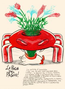 Ed allora, buon Giacon, ti offro questa tavoletta infinita da disegnatore, questa tavoletta votiva del metasegno, dell’infinita prospettiva, come traccia, come tag dello spirito insidioso: occhio veggente al cannocchiale del mondo, da una minuscola nave pirata che naviga sopra l’umano e il disumano della storia stessa dell’illustrazione. Ecco, perché sono tra quelli che cercano una nuova narrazione, intrecciata di paradossi e di metafore vive dell’artista. E tu ce l’hai offerta.