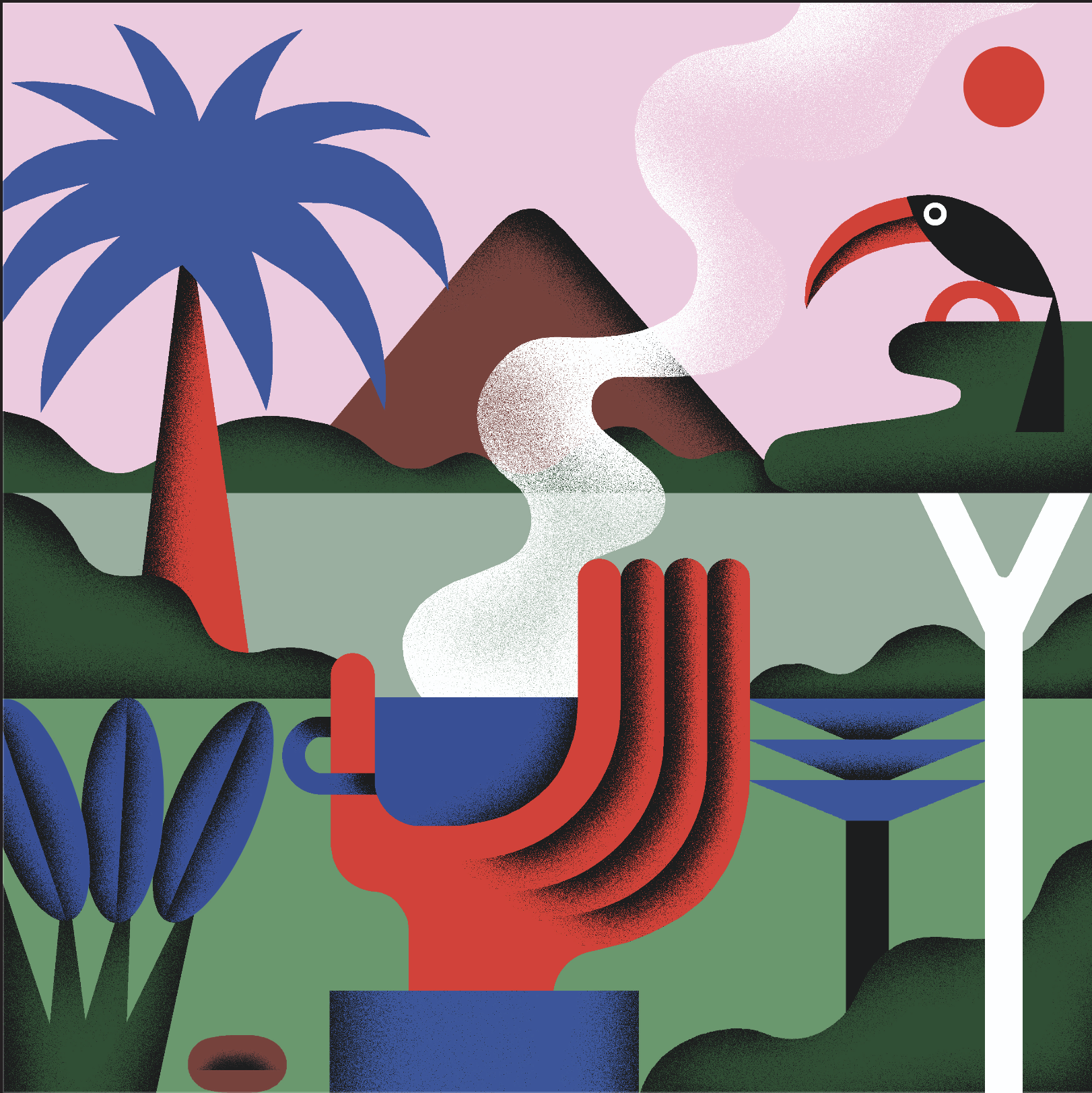 Fra gli artisti selezionati, per l’Etiopia ci sono Maxime Prou & Adèle Favreau, duo francese anche conosciuto come Atelier Bingo che lavora con forme astratte e colori accesi. Per la Costa Rica, un altro duo, questa volta da Berlino, attivo sia nel campo dell’illustrazione che della pittura: ZEBU. George Geaves, illustratore e designer, è in finale con un’illustrazione che vuole raccontare il Guatemala. Luisa Salas, muralista e artista messicana – in arte Hola Lou – rappresenta il Brasile con uno stile minimalista e moderno. Reyna Noriega, educatrice e visual artist, rappresenta la Colombia. Il suo lavoro è caratterizzato dalla varietà di materiali che impiega: dal digitale alla fotografia passando per la pittura.
