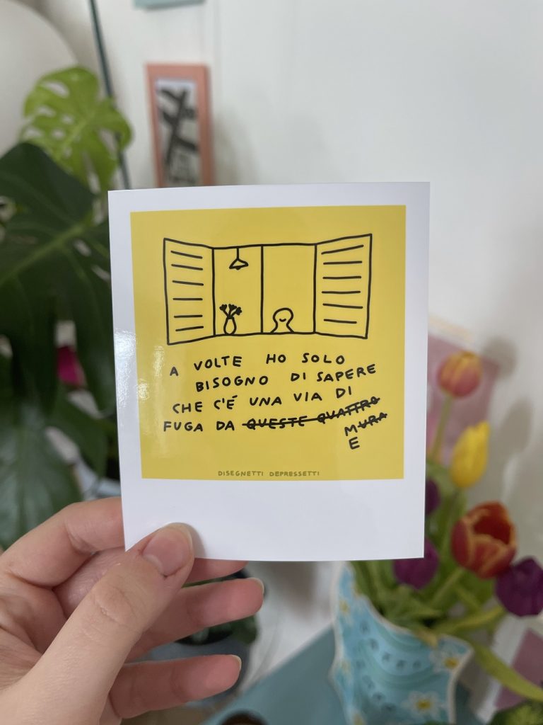 Elisa Shori, illustratrice nata nel 1994, vicentina di nascita e londinese di adozione, alla fine del 2019 crea su Instagram “Disegnetti Depressetti”. Una pagina per dare sfogo alla sua quarter-life crisis e ai suoi pensieri più disparati. Elisa riassume le emozioni in pochi tratti essenziali e ci fa sentire tutti un po’ meno alieni.