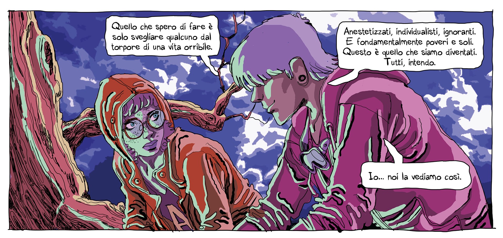 Non voglio essere fuori dal tempo, al contrario voglio cercare di capirlo il più possibile per poter scrivere e disegnare libri come questo.»