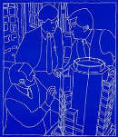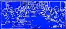 I personaggi ritratti nella serie non numerosissima di serigrafie intitolate “Meetings”, sono figure stilizzate su sfondi blu, “quadretti aziendali” che riportano immediatamente all’immagine pubblicitaria in cui il messaggio palese è quello di ordine ed efficienza. Uomini e donne comodamente seduti su grandi poltrone, intorno a tavoli di lavoro o davanti a grafici e plastici, per prendere decisioni di vitale importanza. Gerarchie.