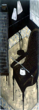 Divengono palcoscenici di vita, come testimoniano il frustino dimenticato sulla poltrona in “Dopo l’equitazione” (2000) o gli occhiali e la penna posati distrattamente sulla seggiola in “Angolo di meditazione” (2000).