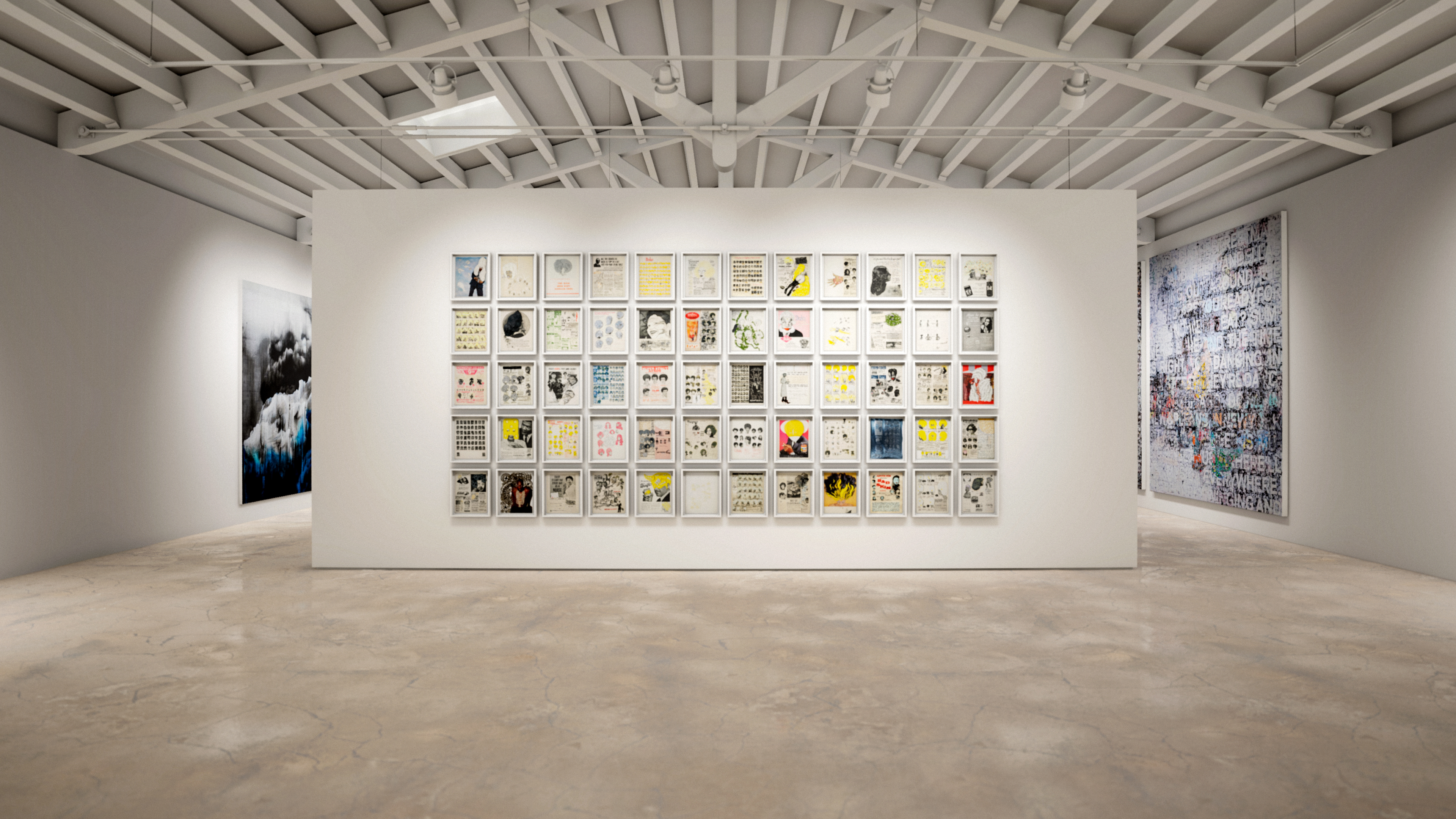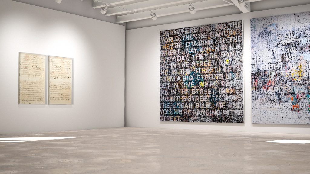 ‘Librettos: Manuel de Falla/Stokely Carmichael, Set 5’, 2015 and Mark Bradford’s ‘New York City’, 2019 and ‘Chicago’, 2019