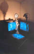 Un possibile percorso espositivo inizia con le grida silenziose del volto frammentato di Oursler (Digital), transitando per i cortocircuiti concettuali dei computer di Bolognini (Sealed computer), soffermandosi sull’evocazioni infantili e del proprio passato nella stanza della giapponese (Drift in a life) Oyama (artista presentata per la prima volta in Italia), o perdendosi nella volta popolata di angeli barocchi aggrappati agli oggetti della cultura del passato, per non cadere nel vuoto, nell’ emozionante installazione-interattiva di Studio Azzurro (Il soffio sull’angelo). Proseguiamo con la nascita e la distruzione delle città ideali e digitali della Megert (La ville des immortels), riflettiamo sulla vita e la morte, sulla memoria, sui ricordi, sul passato e sul presente con lo straordinario volto affiorante nella finta “neve” proiettata su un velo di Memoria di Bill Viola. La piccola immagine della Anderson (At the Shrink’s), in una sorta di seduta psicanalitica proiettata su una minuscola statuetta, fa da controparte ai molteplici televisori che intrappolano l’immagine dell’artista bambina Chantal (Comme si l’immediat…) nelle differenti frammentazioni del proprio ego esistenziale. Una segnalazione a parte meritano i lavori di Sarkisian e Didou, che non si possono definire tradizionalmente videoartistici, ma che ne utilizzano i meccanismi creativi snaturandoli: o negando il frame e soffermandosi più su evocazioni sonore che video (Roadside series:Aberdeen, Sarkisan), o partendo dai tracciati dell’ecotomografie assiali per realizzare sculture che riflesse da specchi anamorfici assumono una precisa forma (Senza titolo, Didou).