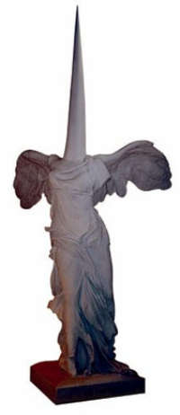 Il senso della vita come precario “passaggio” si esprime nella Torre di Babele di Sara Rossi, che si disfa nel mare come un fragile castello di sabbia, e ritorna in Overlap di Aris Provatàs, che associa a labili impronte dell’uomo e della sua pelle l’angoscioso percorso di un corridoio senza fine, che segna il superamento di ogni soglia. Anche il passato è coinvolto in questo processo di evanescenza, come nella Nike capovolta di Giovanni Rizzoli, che risemantizza il simbolo e lo stravolge, trasformando l’olimpica e “leggera” testimone di una classicità lontana in un’icona di minaccia.