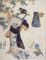 I soggetti raffigurati nelle stampe più antiche, resi con straordinaria grazia formale e colori limpidi e freschi, sono tradizionali e ‘aristocratici’, caratterizzati da un sublime distacco dal reale: si tratta di temi naturalistici o di scene di vita, in genere sviluppati per serie fisse e ricorrenti (come ad esempio “Le cinque feste, ricchezza dell’anno”, o le stagioni rappresentate dalle quattro piante simbolo, il ramo di pesco ecc.) e resi con uno stile manierato, estetizzante, elegante e lieve, che raggiunge livelli di rarefatta perfezione.