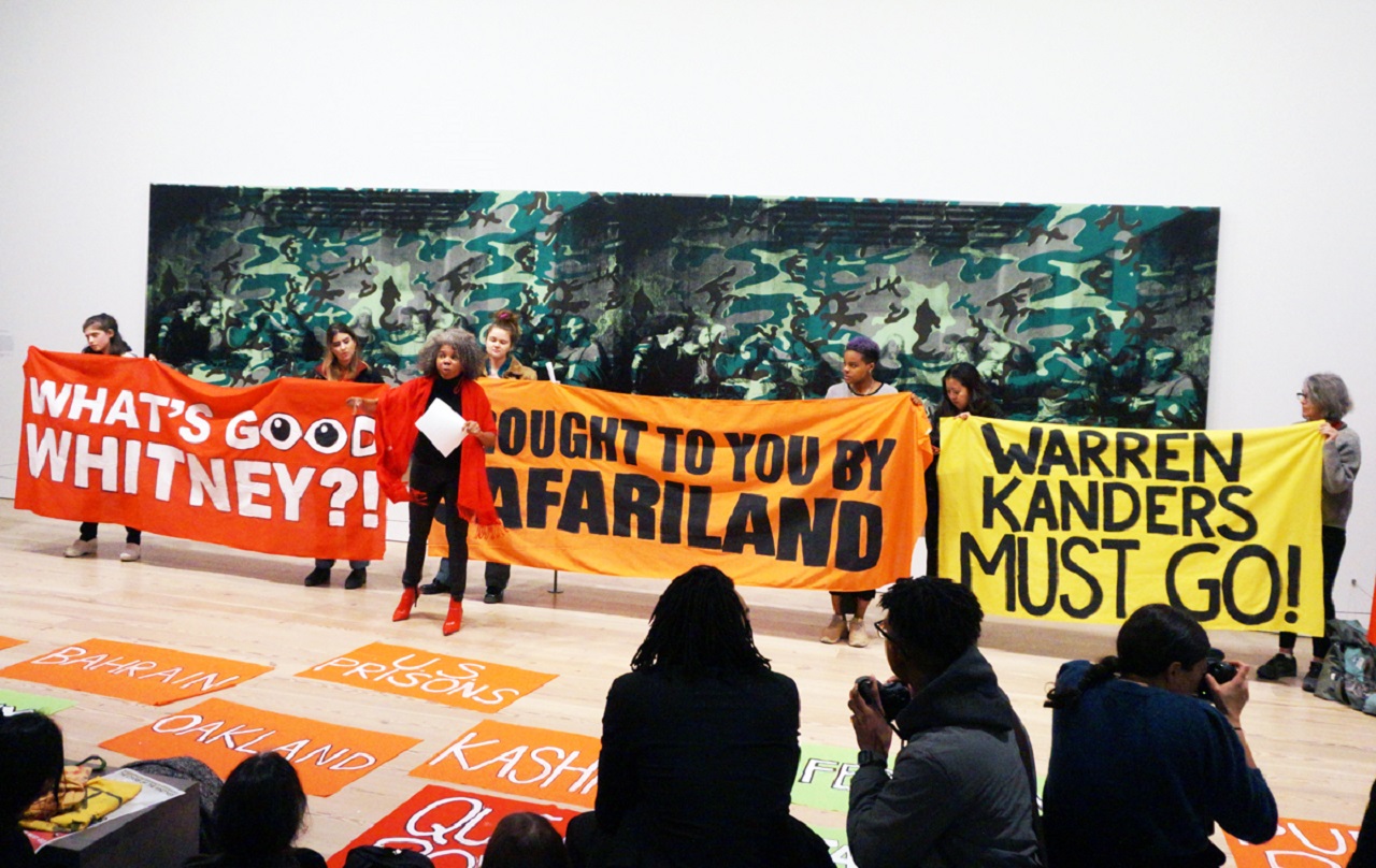 I fatti risalgono allo scorso anno, quando emerse il legame tra Kanders e una società di produzione di armi. Si tratta di Safariland, una società per la quale Kanders ricopre il ruolo di amministratore delegato e che produce forniture militari come gas lacrimogeni impiegati, tra l’altro, contro i migranti al confine tra Stati Uniti e Messico. Kanders possiede anche parte di Sierra Bullets, che secondo quanto dichiarato dal collettivo Forensic Architecture potrebbe anche essere coinvolta in crimini di guerra perpetrati dall’esercito israeliano contro i civili palestinesi, nella Striscia di Gaza. Quando saltò fuori la notizia, oltre 100 membri dello staff firmarono una lettera per chiedere al museo di prendere provvedimenti. Pochi mesi dopo, un gruppo di critici, studiosi e artisti chiese formalmente la rimozione di Kanders dal suo ruolo. Il direttore del museo Adam Weinberg rispose affermando che il Whitney «non può correggere tutti i mali di un mondo ingiusto, né è questo il suo ruolo». «Produciamo anche prodotti non letali, che sono stati creati in alternativa alle soluzioni letali», fu il tentativo di difesa, piuttosto goffo, di Kander.