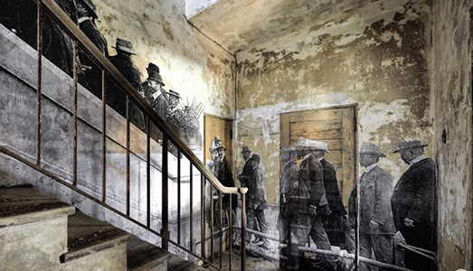 La grande installazione è stata organizzata dal mercante d’arte Jeffrey Deitch e Artsy, ed è un seguito di “Unframed”, l’installazione fotografica dell’artista del 2014 realizzata proprio su Ellis Island. Per quel progetto, che riproponiamo in queste foto, JR aveva incollato fotografie ingrandite degli antichi pazienti sui muri fatiscenti del vecchio ospedale e sulle finestre rotte.