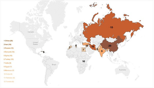 Sono addirittura 469, quasi il doppio rispetto al 2014, i casi documentati di attacchi alla libertà artistica, che vanno dalla censura all’omicidio, passando per dentenzioni, aggressioni e intimidazioni. Paesi come la Cina, l’Iran e la Russia sono tra i paesi più autoritari, dove fare arte significa spesso dover pensare bene alle conseguenze del proprio lavoro. Le fonti della ricerca includono mezzi d’informazione, reporter indipendenti e ong, anche se gli studiosi della Freemuse hanno specificato l’impossibilità di poter raccogliere informazioni sufficienti e attendibili per alcuni paesi, come per esempio la Corea del Nord, per la quale scarseggiano documenti e ricerche ufficiali. L’indagine ha escluso dalle sue statistiche giornalisti e blogger, in quanto l’operato di questi professionisti non riguarderebbe tanto la libertà di espressione ma quella di informazione, per la quale purtroppo non scarseggiano dati altrettanto preoccupanti. (Giulia Testa)