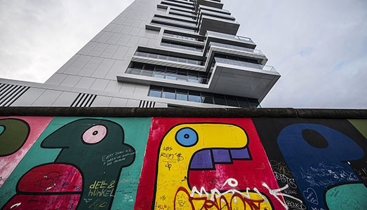 È probabilmente il monumento più brillante di Berlino, che però segna un passato oscuro. Parliamo della East Side Gallery, ovvero la più lunga sezione dell’antica divisione che ha accompagnato la città dal 1961 al 1989. Ora, però, su Mühlenstraße, le ombre peggiori non solo quelle del blocco sovietico, ma quelle di una gentrificazione selvaggia, che ha già smantellato un pezzo di muro nel 2013 a favore di ingressi di nuovi condomini di lusso con vista sulla Sprea.