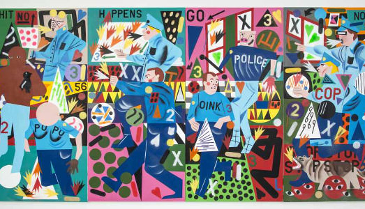L’aggressività delle forze dell’ordine statunitensi nei confronti della comunità afroamericana continua ad animare il dibattito mediatico, negli USA e non solo. Gli artisti hanno provato a trattare la questione con i più vari mezzi espressivi, dai graffiti ai documentari passando per la fotografia, in un misto di critica sociale e analisi giornalistica. La pittura non è rimasta a guardare, come dimostra la recente personale di Nina Chanel Abney alla Kravets Wehby Gallery di New York: la 33enne afroamericana, che si è conquistata un posto di tutto rispetto tra gli artisti contemporanei del suo paese, ha realizzato una serie di dipinti che ricordano gli ultimi fatti di cronaca. Le grandi tele colorate, intitolate What, Why, When, Who e Where, raccontano proprio le violenze della polizia nei confronti dei giovani neri statunitensi. Le opere fanno riflettere sulla complessità dei fenomeni sociali del nostro tempo, una confusione ben rappresentata dai soggetti dei quadri, in cui agenti bianchi si alternano con uomini neri in divisa e in cui le vittime sembrano appartenere a entrambe le parti. In questo colorato caos la carica politica sembra lasciare il posto a un sincero smarrimento esistenziale. (Giulia Testa)