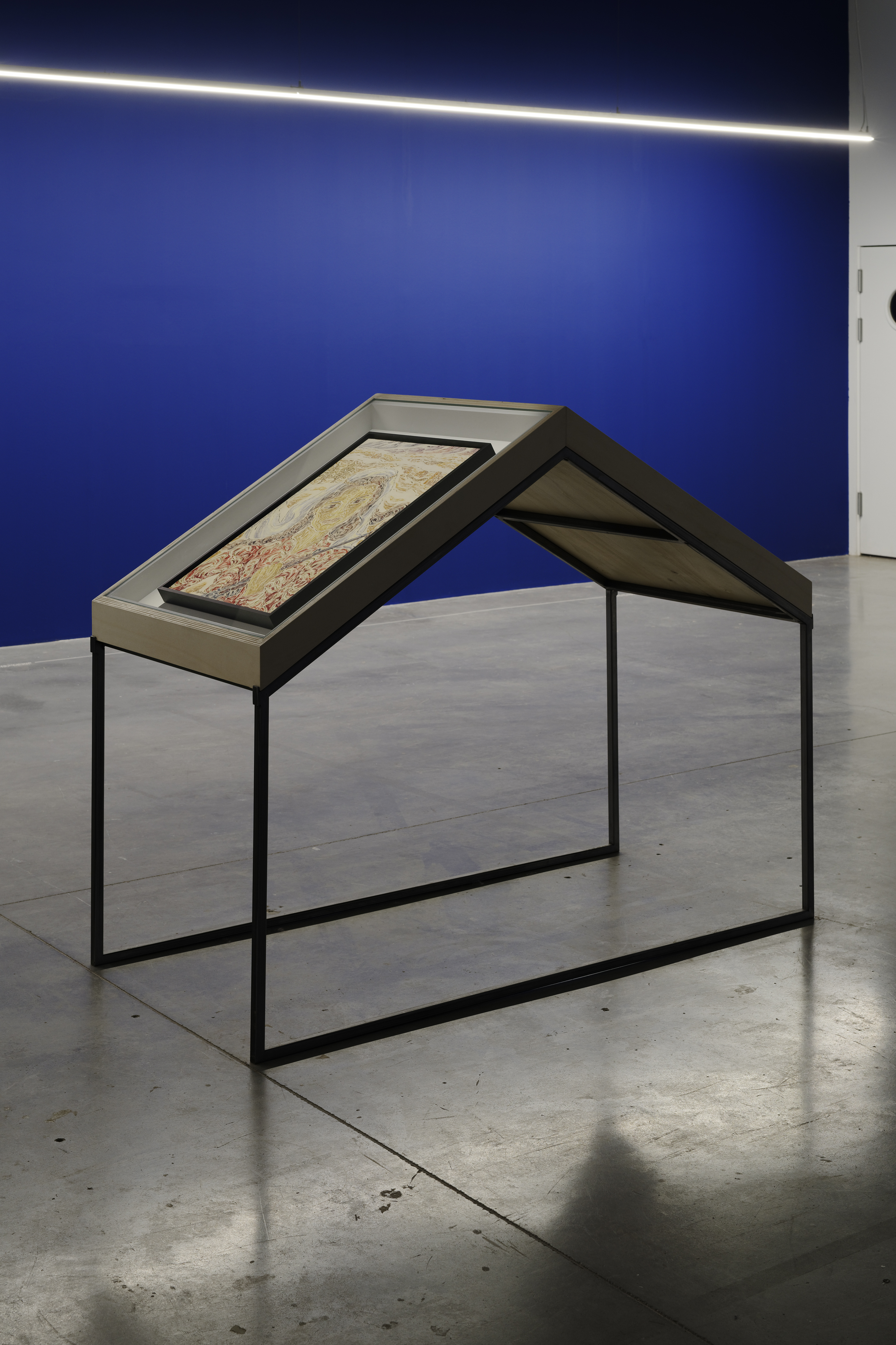 Aslı Çavuşoğlu (1982, Istanbul) in The place of stone (affreschi su pannelli Aerolam, 2018), ripercorre la storia e gli scambi commerciali del lapislazzuli del sito minerario di Sar-e-Sang in Afghanistan. Un’opera che ci parla anche dei conflitti e dei giochi di potere in una zona ricchissima di giacimenti minerari, ma con una popolazione tra le più povere al mondo. Un percorso in cui le opere rimettono in questione i meccanismi politico-culturali e socio-economici odierni, e dove l’azione curatoriale ha saputo dare uno spazio di parola all’artista.