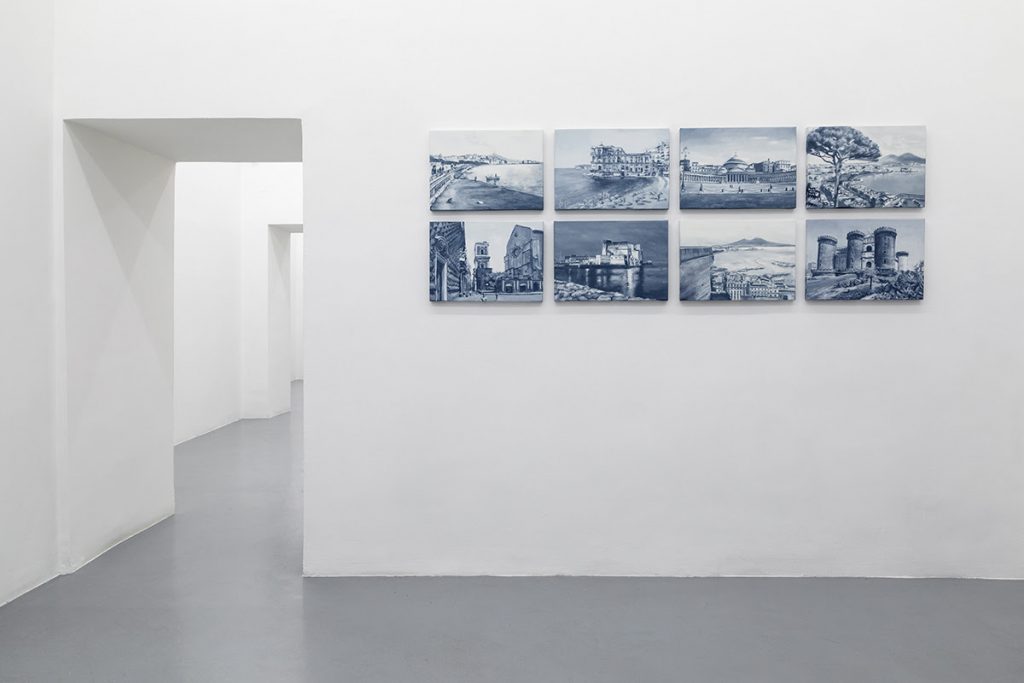 In questa condizione di isolamento forzato, anche se ammorbidito da mezzi di comunicazione pervasivi e totalizzanti come mai prima d’ora, possiamo osservare quei luoghi che eravamo soliti frequentare e, ponendo tra noi e loro la giusta distanza, riconsiderarne le funzioni. Nel caso specifico, cos’è una galleria d’arte? A cosa serve? Se le mostre virtuali possono trasformare l’esperienza della visione di un’opera in qualche altra cosa – magari non meno “bella” ma certamente diversa – come si fa con le persone? Cosa è successo e come cambierà quel meccanismo relazionale che si attivava quando ci si incontrava proprio in una galleria d’arte, durante l’occasione dell’opening? Nel 2019 appena trascorso e ormai così distante, la Galleria Umberto Di Marino aveva “interrotto” la sua programmazione per fare spazio a Visto da qui, progetto in rapida successione per il quale, a cadenza bisettimanale, venivano presentate tre opere per le tre stanze della galleria, tutte fruibili da un unico punto di osservazione. Un tentativo di andare oltre le modalità consolidate della mostra e i suoi rituali cristallizzati, per riflettere sulla struttura della galleria stessa e del fare mostre (ne scrivevamo anche qui).