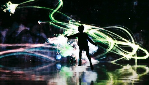 La scienza fa spettacolo? A volte decisamente sì. E invita a far spettacolo, anche. Qui siamo al Museo Nazionale per la Scienza e l’Innovazione Emergenti a Odaiba, distretto di Tokyo, dove è in corso una mostra. Il gruppo di designer digitali teamLab, noti soprattutto in Oriente per le loro creazioni molto scenografiche, presenta l’installazione, Light and dark. Pulviscoli di luci e colori fluttuanti. Come fluttuante è la ragazza che performa l’opera, meglio di qualunque performer. E che sembra divertirsi un mondo.
