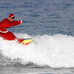 Da un po’ di anni la figura di Babbo Natale subisce dei notevoli détournement, decostruita (sempre per dirla da eruditi) e ricostruita, come ha ben fatto vedere l’artista (molto erudito) che ha collocato Babbo Natale nei set dei più celebri quadri. Poi c’è la cinese vestita da Babba Natale che penzola da un albero che vedete in una delle foto che vi proponiamo, c’è Babbo Natale subacqueo, c’è quello che fa surf e quello che si fa fotografare accanto a un ebreo ortodosso.