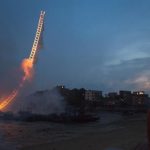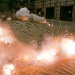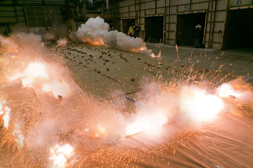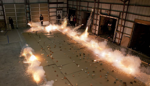 Insomma, Cai Guo-Qiang, discendente da una famiglia di mandarini di cui conserva squisitissimi modi, può essere un tipo pericoloso perché il suo materiale di lavoro è la polvere da sparo. È facendola correre su tele, carte stese su pavimenti e pareti che realizza i suoi quadri. Stavolta, in un magazzino specializzato in polvere da sparo a Brookhaven, New York, la performance è andata bene. Si trattava di un lavoro preparatorio per la grande mostra che l’artista cinese avrà a luglio alla Fondation Cartier di Parigi, dove per “The Great Animal Orchestra” realizzerà un pezzo monumentale lungo 18 metri e alto 4. Auguri!