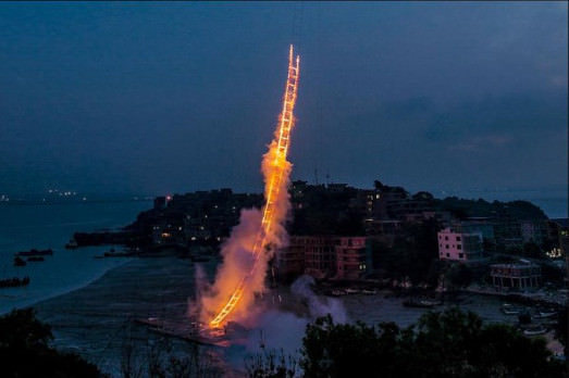 Una volta rischiò di mandare a fuoco un cornicione della Tate Modern e il museo londinese fu sgombrato in fretta e furia e tanti saluti alla performance. Qualche anno prima aveva fatto perdere il posto al suo amico Ni Tsai-Chin, direttore della Galleria Nazionale di Taiwan, perché il museo aveva preso fuoco sul serio, non del tutto per fortuna. Un’altra volta a prendere fuoco, e senza danni, è stato un fiume.