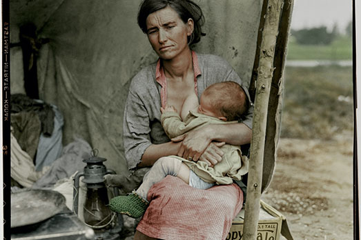 100 fotografie restaurate e ricolorate raccolte in The Paper Time Machine, il libro, nato dalla collaborazione tra Wolfgang Wild, creatore e curatore di Retronaut e Jordan Lloyd di Dynamichrome, che cerca di riportare un po’ di colore nella storia. Dalle foto simbolo come Migrant Mother di Dorothea Lange, alle istantanee che documentano la costruzione del Golden Gate Bridge o della Statua della Libertà, nel volume ogni immagine è accompagnata dall’originale in bianco e nero. Una volta le fotografie venivano colorate a mano, ma spesso il risultato finale era poco convincente. Le immagini di Paper Time Machine provano a colmare un vuoto, avvicinandoci ai protagonisti o a vicende del passato, in alcuni casi più attuali che mai: dai ritratti dei migranti che sbarcavano a Ellis Island alle fotografie della guerra di Crimea del 1855, ecco qualche frammento di storia, per la prima volta a colori.